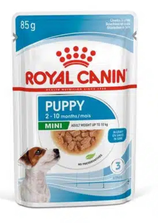 - در صورت ترکیب با غذای خشک **Mini Puppy**، تعداد بستهها متناسب با کالری دریافتی کاهش یابد.