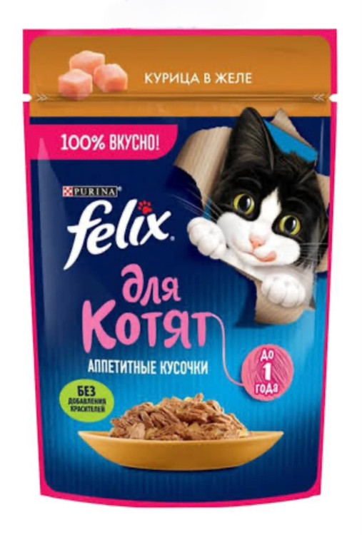 - این غذای تر از برند **Purina Felix** به طور ویژه برای **بچهگربهها تا ۱۲ ماه** طراحی شده است تا نیازهای تغذیهای ویژهی رشد سریع آنها را برآورده کند.