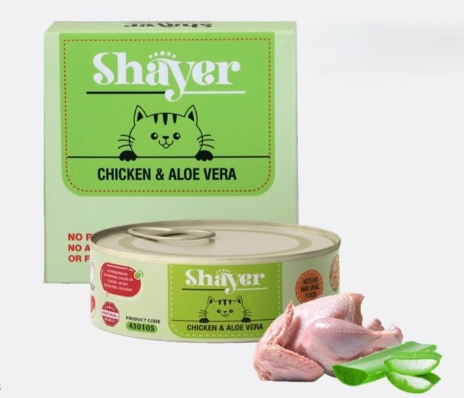 شایر – غذای طبیعی بچهگربه با طعم مرغ و آلوئهورا (۱۱۰ گرم)
